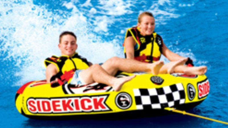 浮き輪の上に乗って座りながら、海の上を走ります。スリルとスピードの満点のビックスーパーマーブル