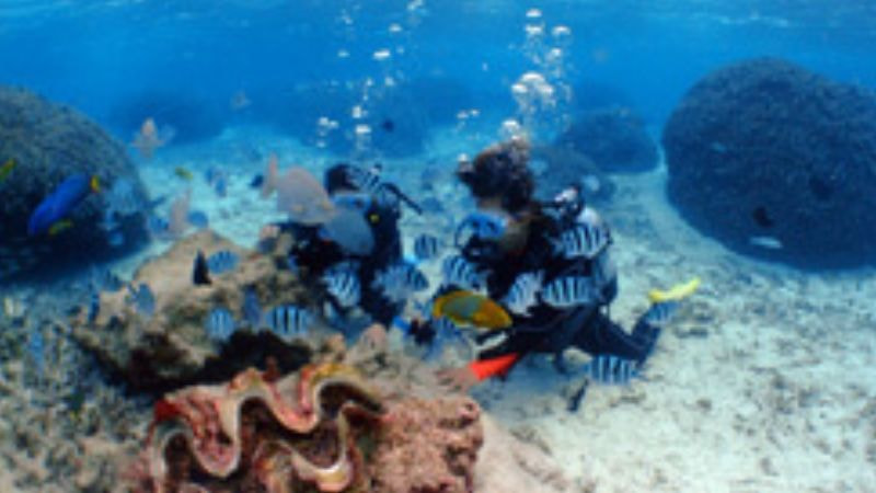 専属の水中ガイドが、ダイビングを安全にご案内致します。体験ダイビング後、休憩します。