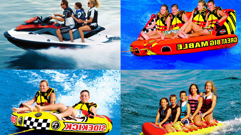 マリンスポーツは、ジェットスキー(2人乗り)バナナボート(5人乗り)スーパーマーブル(4人乗り)ビスケット(2人乗り)好きなマリンスポーツを2種類選択して遊んで頂けます。