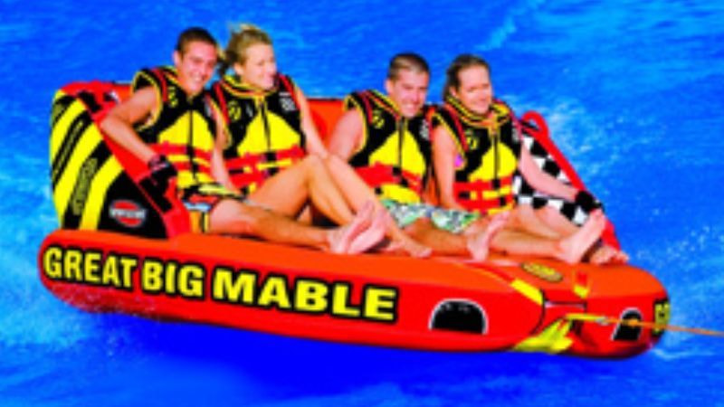 浮き輪の上に乗って座りながら、海の上を走ります。スリルとスピードの満点のビックスーパーマーブル