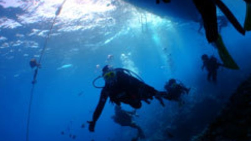 ボートから、ゆっくり海に入ります。水深の浅い場所で呼吸の練習、耳抜きの練習をします。マスター出来たら、体験ダイビングスタートです。