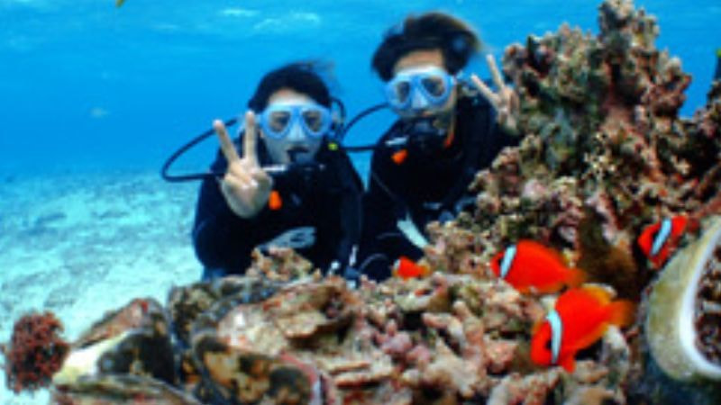 ゆっくり魚を見ながら、本格的なダイビングをご案内致します。呼吸、耳抜きの様子を見ながら、水深3メートル~12メートルまでご案内します。