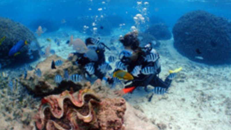 初めてのダイビングを安心して参加できるよう、担当インストラクターがしっかり説明した後に、水深の浅い場所で練習後、ダイビングをスタートします