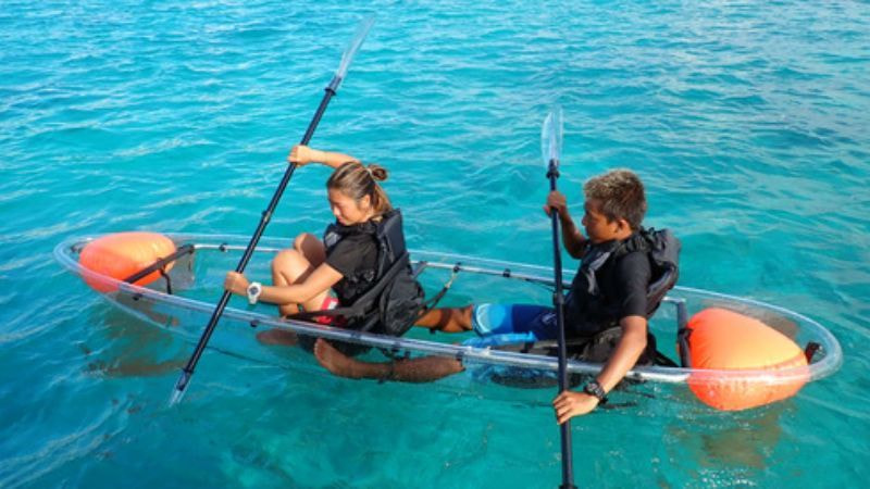 当社のクリアカヤックは、5歳の小さいお子様でも楽しめる、2人乗りの透明カヤックです。
