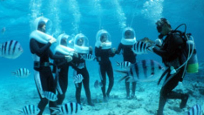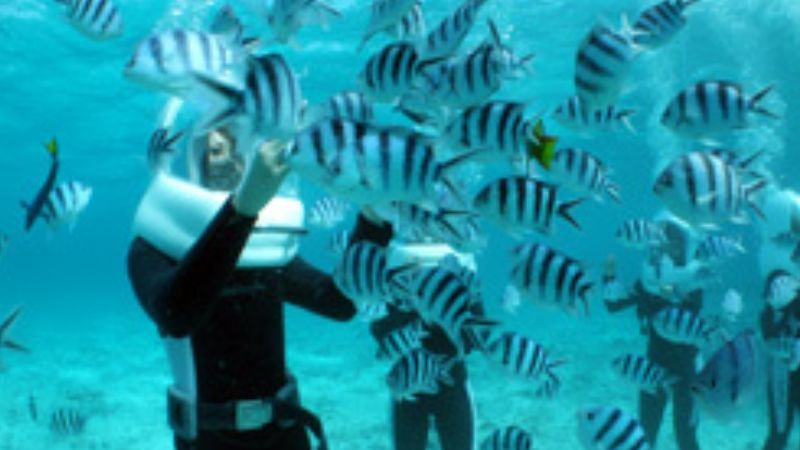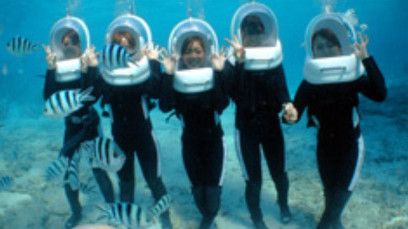 熱帯魚に囲まれながら水中散歩を楽しみましょう。海中散歩しながら、何ともいえない浮遊感を楽しんでください。