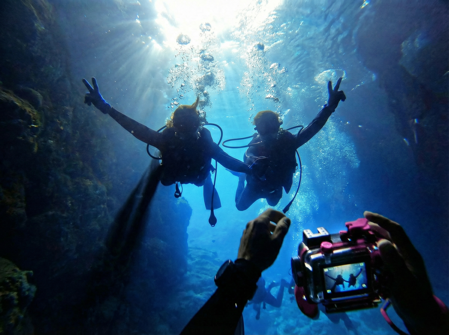 動画も静止画も撮影可能な、とてもきれいに撮影できる最新機種の水中カメラ撮影も思い出をたくさん残して頂けます