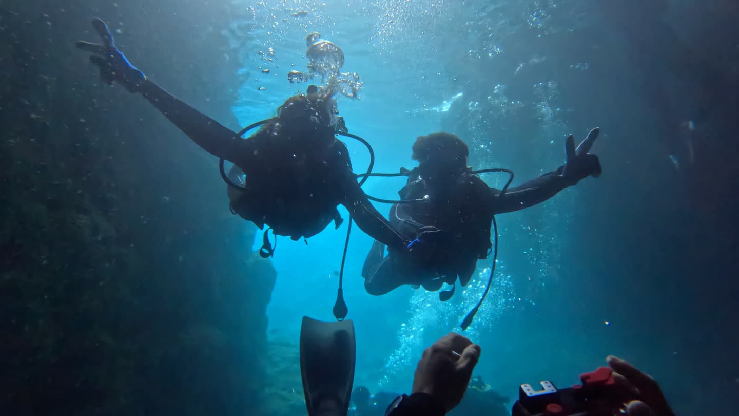 プロのダイビングスタッフが無料で撮影いたします。沖縄最高の一枚を青の洞窟 体験ダイビングで残しませんか?